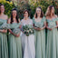 Mint Green Long Elegant Jersey Bridesmaid Dresses WG774