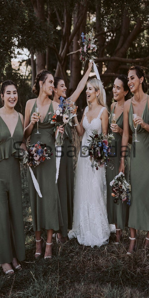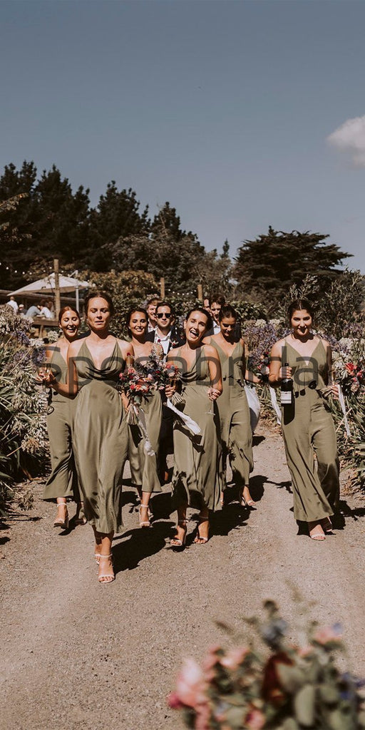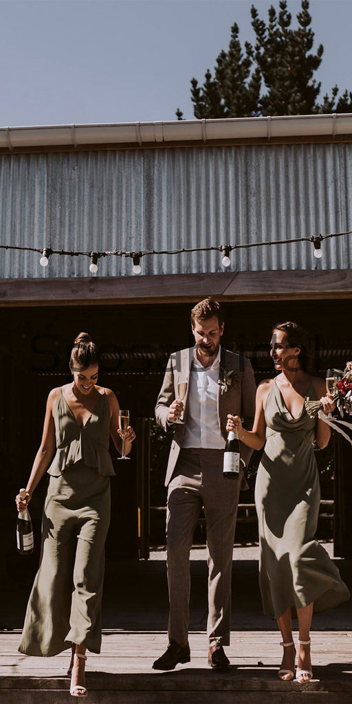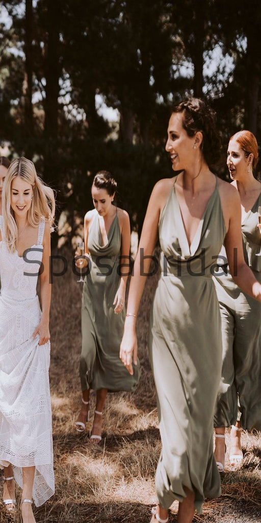 Mismatched Green Simple Cheap Long Bridesmaid Dresses WG723