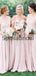 New Arrival Off the Shoulder Pink Chiffon Long Bridesmaid Dresses WG858