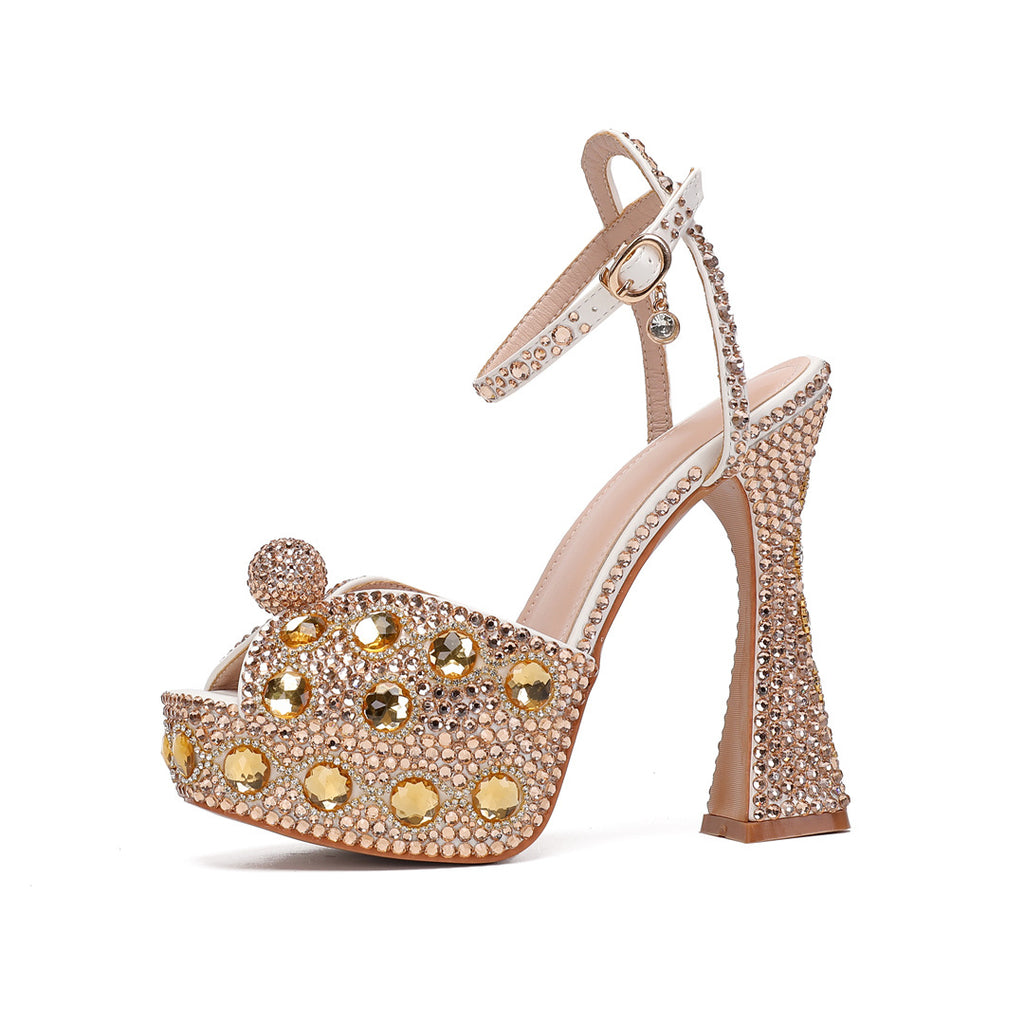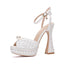 New Fish Mouth High Heels Thick Heels 14cm Rhinestone Pearl Women's Single Shoes Wedding Dress Bride Wedding Shoes