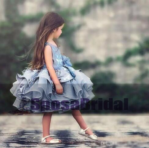 Blue Short Cute Best Sale Soft New Unique Flower Girl Dresses, Popular