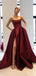 Burgundy Strapless A-line Cheap Side-slit Long Prom Dresses, PD0787