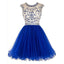 Sexy Open back Royal Blue Short Tulle homecoming prom dresses, CM0008