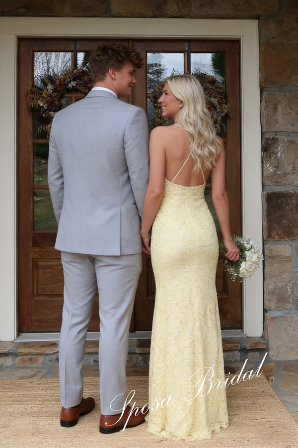 Elegant Lace Spaghetti Straps Sleeveless Mermaid Floor Length Prom Dress, PD4087