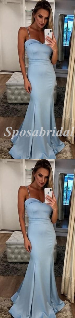 Sexy Satin Spaghetti Srtraps V-Neck Sleeveless Mermaid Long Prom Dresses, PD3597