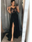 Sexy Soft Satin Spaghetti Straps V-Neck Sleeveless Backless A-Line Long Prom Dresses, PD3581