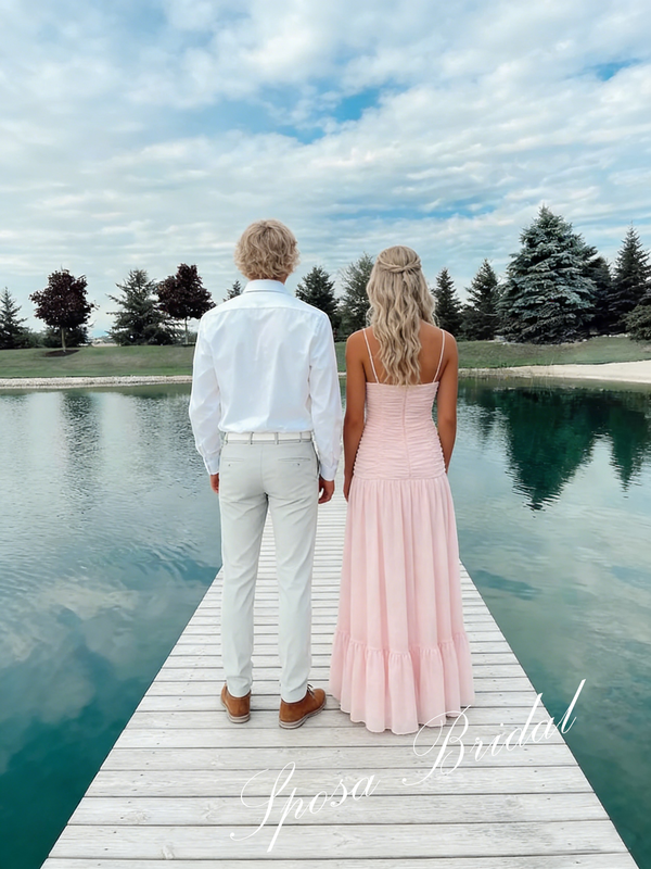 Sweet Chiffon Spaghetti Straps V-Neck Sleeveless A-Line Floor Length Graduation Dress, PD4083