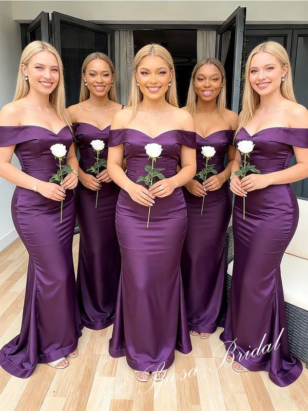 Sexy Soft Satin Off Shoulder Sleeveless Floor-Length Mermaid Maxi Bridesmaid Dresses, BD3443