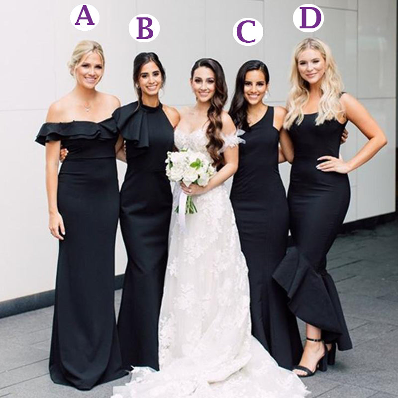 Black Mismatched Mermaid Long Custom Elegant Long Bridesmaid Dress, BD3243