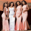 Blush Pink Modest Jewel-neck Lace Mermaid Long Bridesmaid Dress, BD3193
