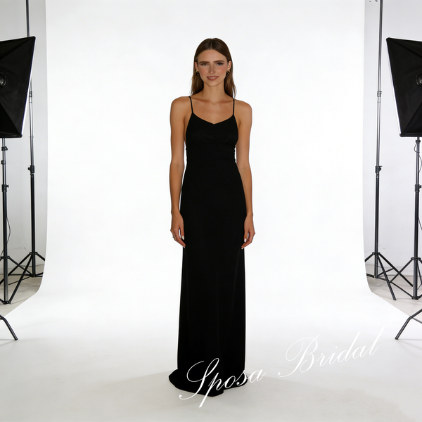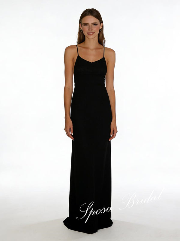 Sexy Black Jersey Spaghetti Straps Sleeveless Open Back Mermaid Prom Dress, PD4063