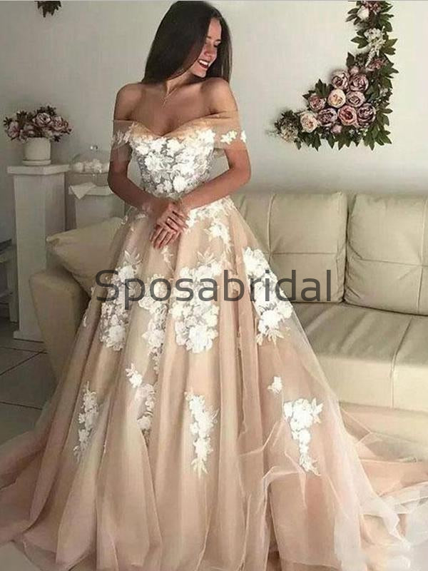 Champagne Off the shoulder A-line Gorgeous Long Wedding Dresses WD0421