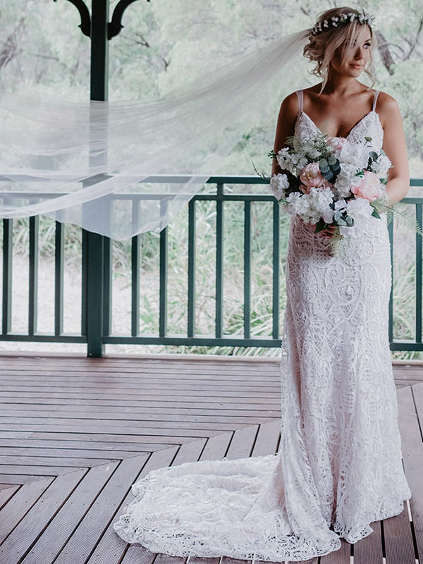 Sexy Boho Rustic Cocktail Lace Modest Long Wedding Dress, WD0583