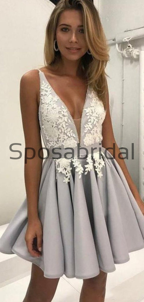 A-line Gray Spaghetti Straps V-Neck Popular Homecoming Dresses BD0426