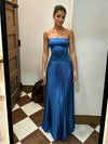 Chic Royal Blue Strapless Pleated Satin Prom Dress, Sleek Formal Gown for Cocktail Party, PD4228