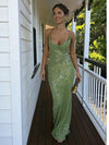 Eye-Catching Avocado Green Sequin Backless Prom Dress