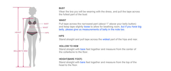 3. Size: standard size or custom size, if you need custom service, we need following measurements, please leave information in the note of shopping cart. * are necessary.