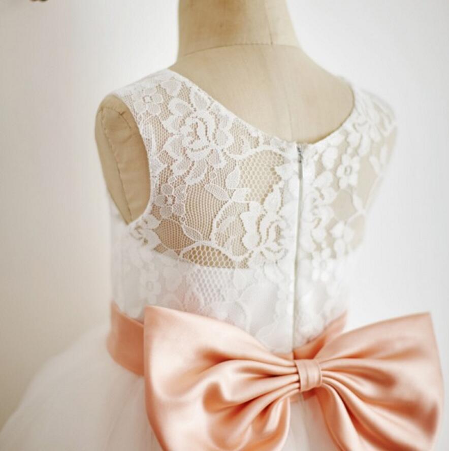 Lovely Illusion Lace Top Tulle Flower Girl Dresses with Knot Bow, Little Girl Dresses, FG082