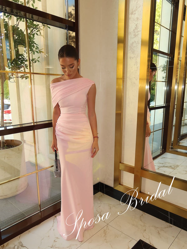Sexy Chiffon Asymmetrical Neck Sleeveless Mermaid Floor Length Prom Dress, PD4095